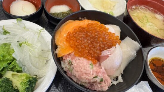 ご当地メニューの海鮮丼やジンギスカンがあります。