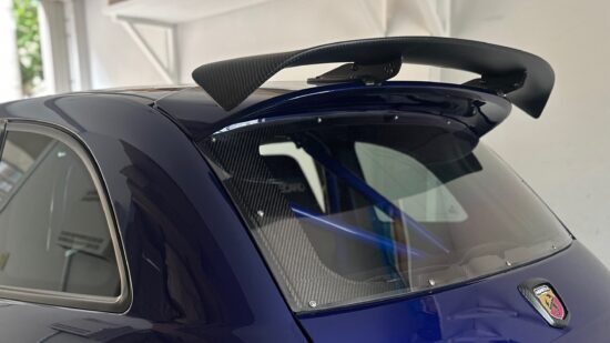 カーボンリアウイングを支えるステーにもアバルトを想う気持ちが入り込んでいるのが伝わってきます。