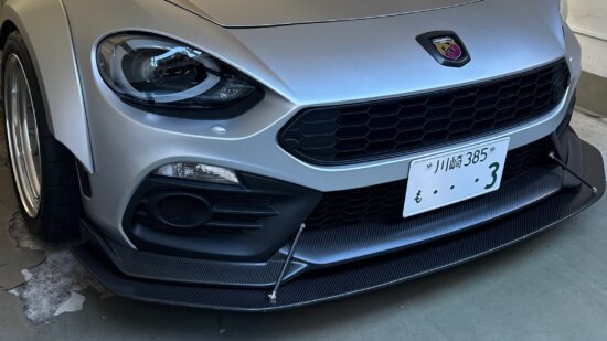 殺風景だった124spiderのフロントバンパー下を絶妙なバランスで滑らで美しいカーボンの光沢を見せてくれます。