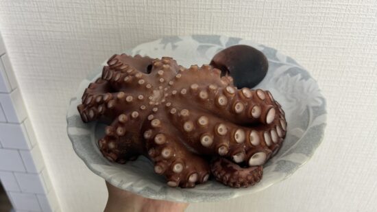今年は、サンポスの常連M様からタコ丸1匹の差し入れを頂き、今朝からせっせと下処理をしました(^^♪