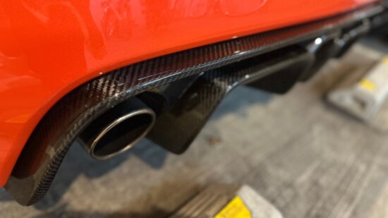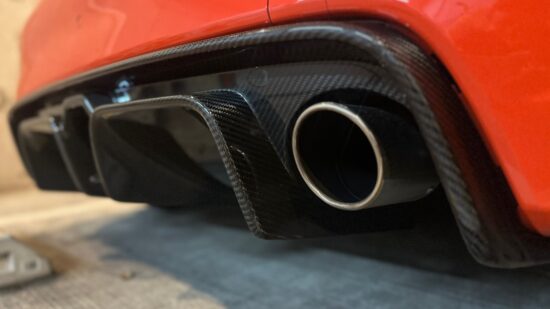 純正ディフューザーに比べると迫力と、更にカーボンの存在感と美しさを存分に楽しんで頂けるTHREEHUNDREDのカーボンリアディフューザーは、純正のディフューザーを外して付属の器具を使って取り付けるので、車体側の加工は一切不要で取り付けが可能!!
