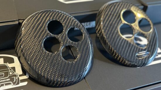 被せてペタっと貼り付ける簡単スムーズな設計でありながら、ノーマルのちょっぴりがっかり感が出ているプラスチックパネルを美しいカーボンの世界へ・・・・しっかり目がいく場所なので、存在感はやはり大事!!