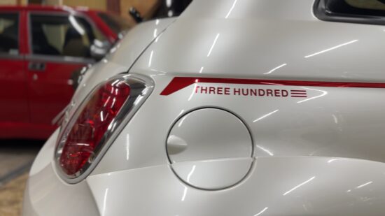 アバルトらしく・・・THREEHUNDREDらしい・・・主張しすぎないディテールをとことん追求してデザインして作りあげたサイドストライプ、無いとなんだか物足りない・・・そんな気分になっちゃいますよ♪