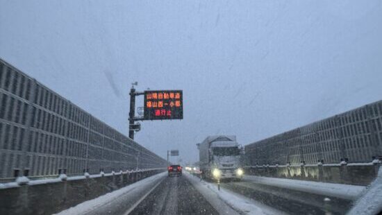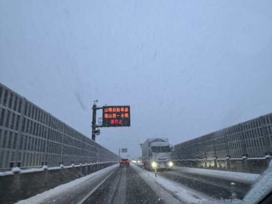 山陽道が雪で通行止めで、